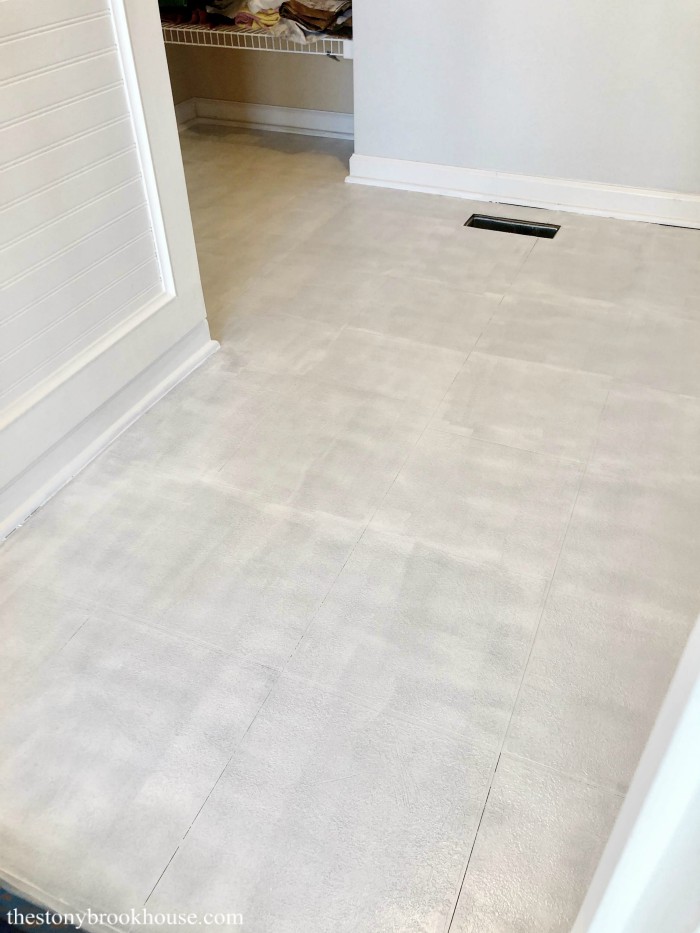 This room leads to the garage, so for the week that I was working on it, we had to use the side door to access the garage. Nobody was walking on my floor!! 😉